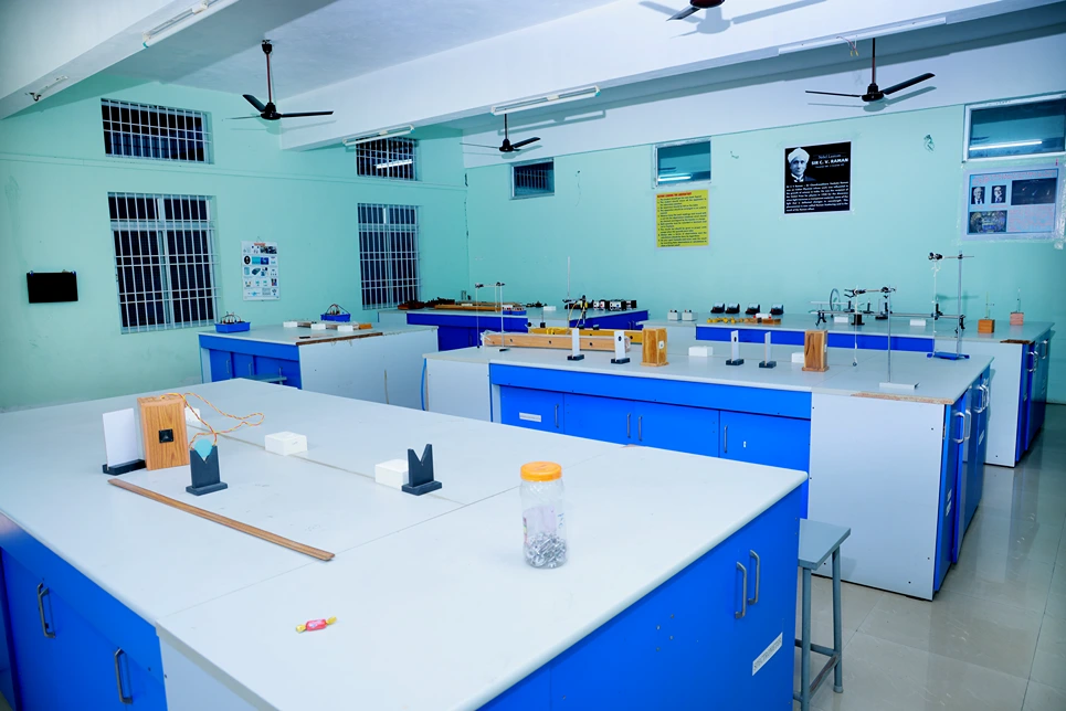 The marvels of science can be experienced practically by the students in the state-of- the- art laboratory for physics. Laboratory work is a very important part of the course in general physics. It reinforces the students understanding of fundamental concepts and principles while, at the same time helps the students to develop skills in carrying out scientific measurement. We introduce students to the techniques of data gathering and analysis, students will learn to use laboratory equipment such as calipers, meters and even optical benches. Students will be taught to do selected experiments in mechanics, heat, light, sound, electricity and magnetism. Practical classes will be conducted for one hour per week for ICSE students and two hours per week for ISC students. During the summer camp, the students are allowed to use the lab to make their own project for Synchronize (science exhibition). At the end of the academic year, the students will be able to recognize the method of laboratory technique and analysis; recognize the relationship of experimentation to the growth and development of scientific theories.